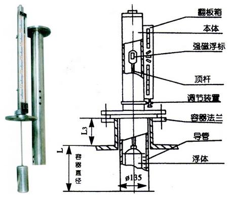 頂裝式磁翻板液位計結(jié)構(gòu)圖